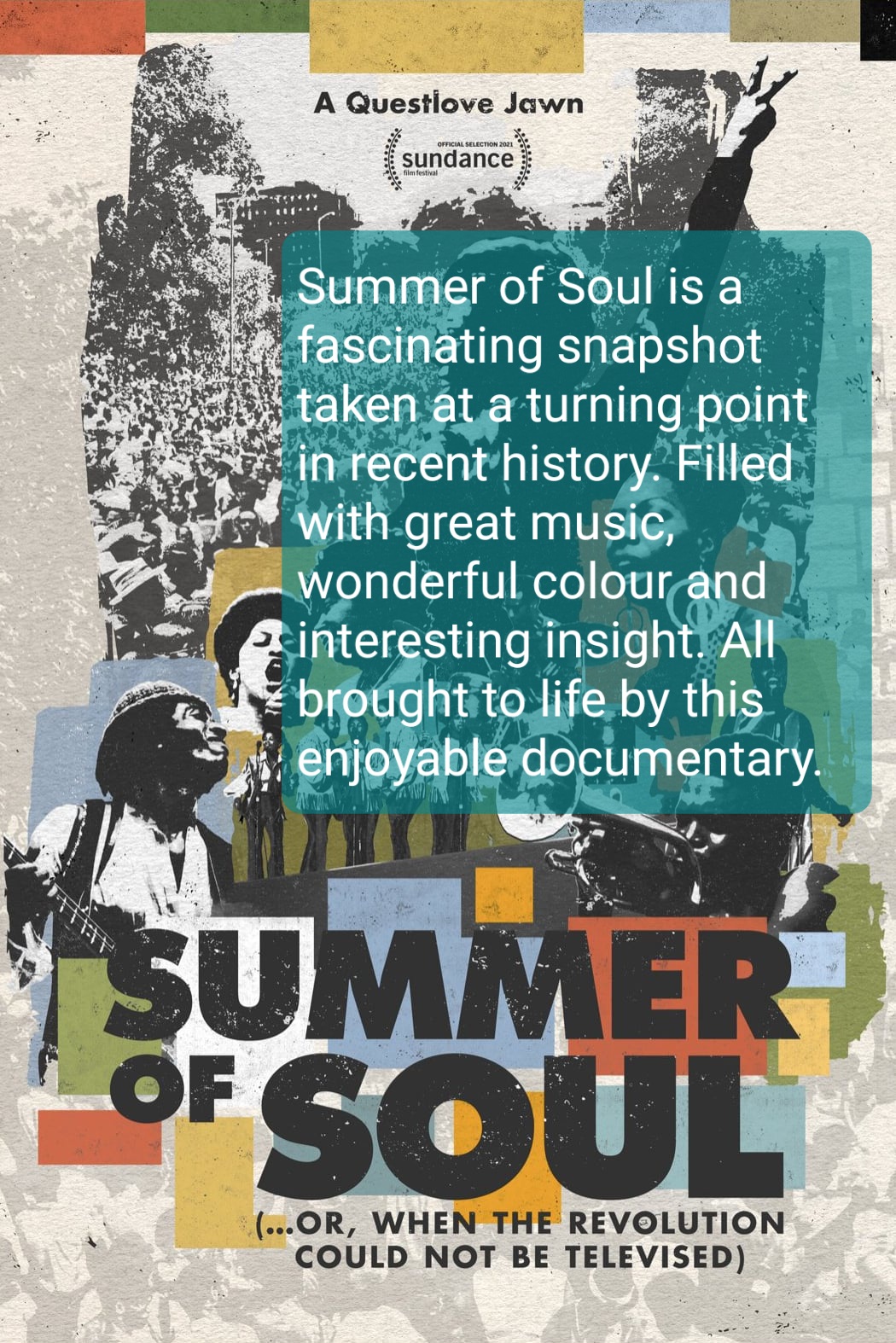 A bit like a musical festival itself, this fascinating documentary has some acts and stories that appealed more than others. What it always does however, is provide a gloriously colourful snapshot of black life in 1969 Harlem and the wider United States.