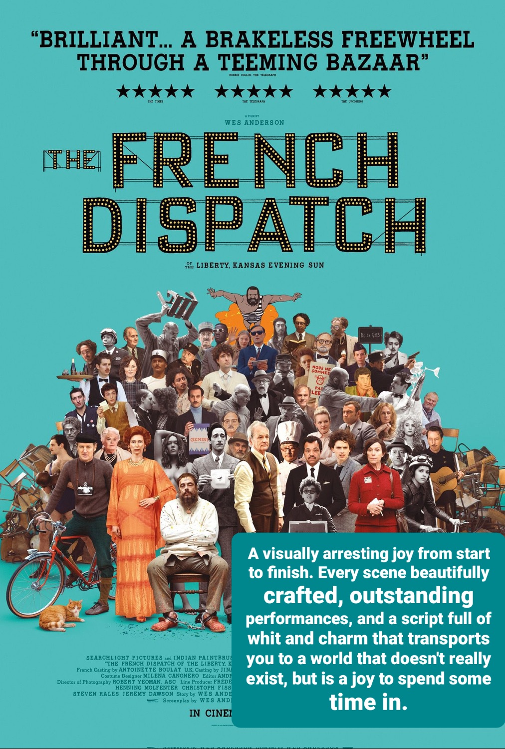 Luckily for me I do and The French Dispatch, is full on Anderson. Its appearance is stunning, its stories eccentric and humour engaging. A visual feast that made me happy.