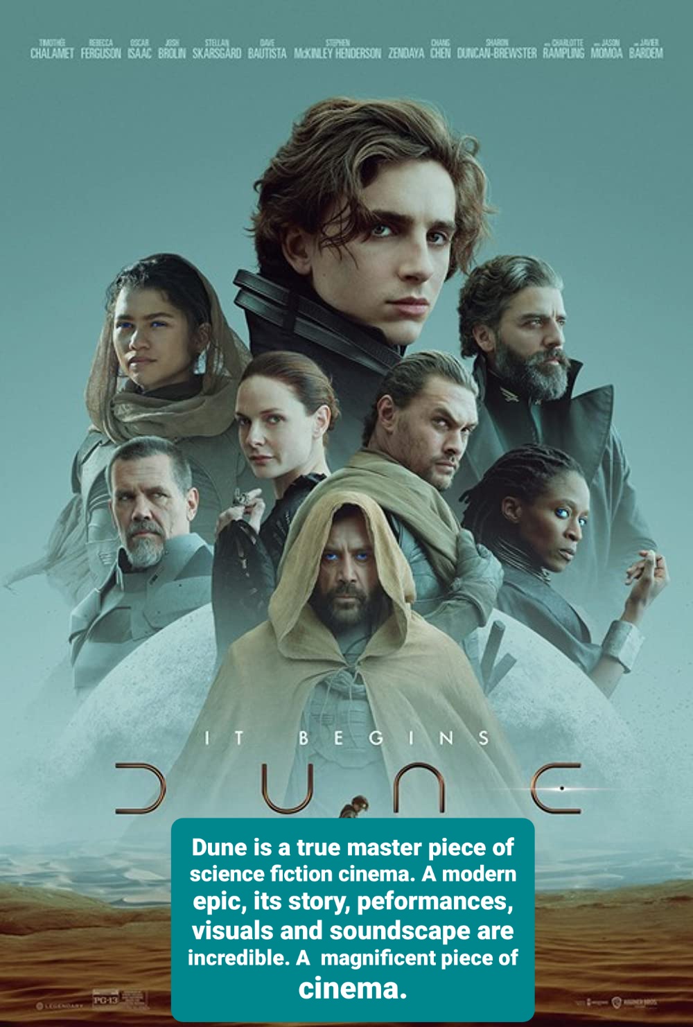 In my opinion with Dune Villeneuve has created a true master piece of science fiction cinema. A modern epic, its story, peformances, visuals and soundscape are incredible. And perhaps my best advice is this is a truly big screen experience, so if you can watch it there. Treat yourself and see it properly, roll on part two.