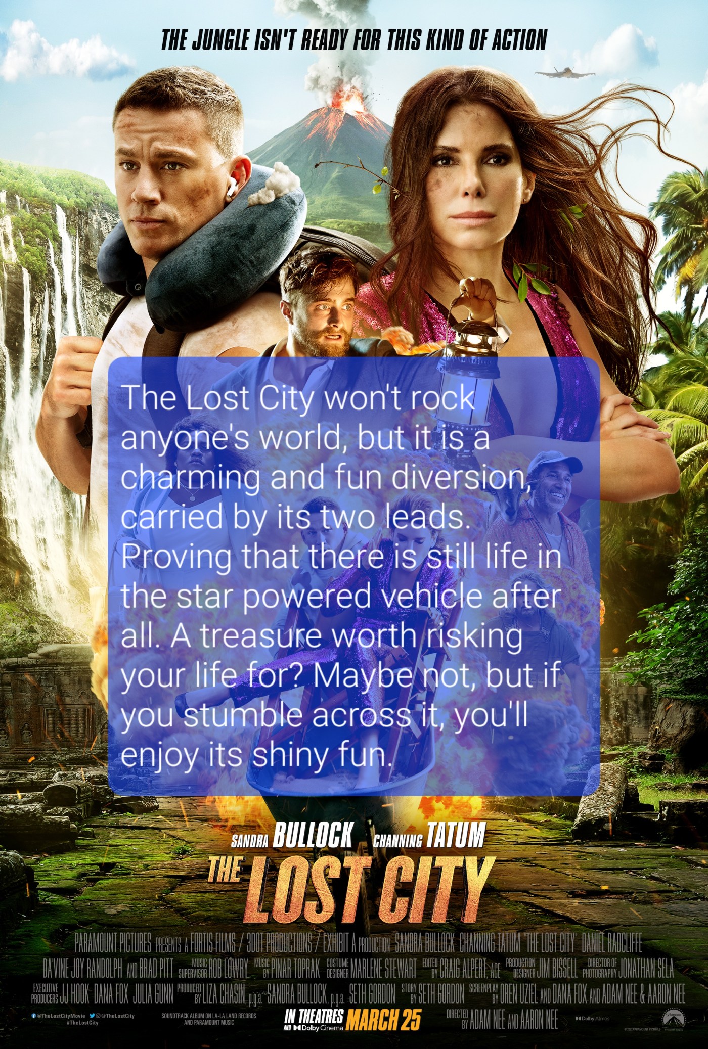The Lost City won’t rock anyone’s world, but it is a charming and fun diversion, carried by its two leads. Proving that there is still life in the star powered vehicle after all. A treasure worth risking your life for? Maybe not, but if you stumble across it, you’ll enjoy its shiny fun.