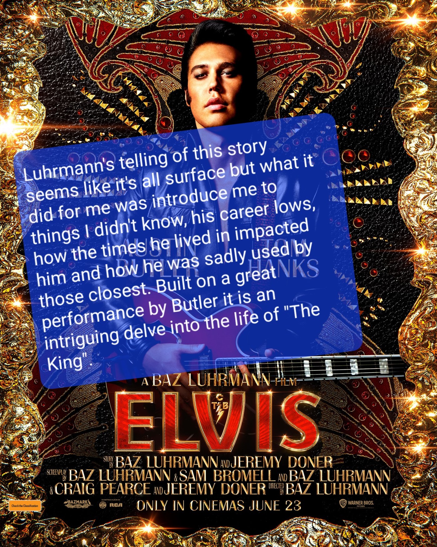 Luhrmann’s telling of this story seems like it’s all surface but what it did for me was introduce me to things I didn’t know, his career lows, how the times he lived in impacted him and how he was sadly used by those closest. Built on a great performance by Butler it is an intriguing delve into the life of “The King”.