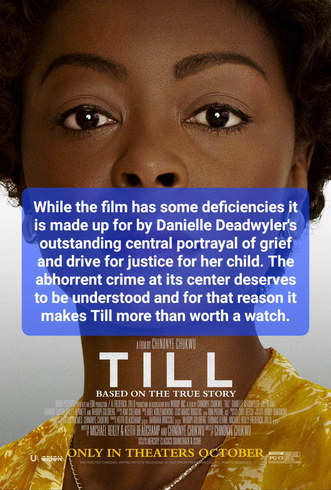 While the film has some deficiencies it is made up for by Danielle Deadwyler’s outstanding central portrayal of grief and drive for justice for her child. The abhorrent crime at its center deserves to be understood and for that reason it makes Till more than worth a watch.