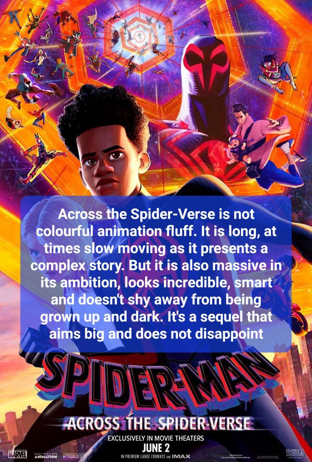 Across the Spider-Verse is not colourful animation fluff. It is long, at times slow moving as it presents a complex story. But it is also massive in its ambition, looks incredible, smart and doesn’t shy away from being grown up and dark. It’s a sequel that aims big and does not disappoint.