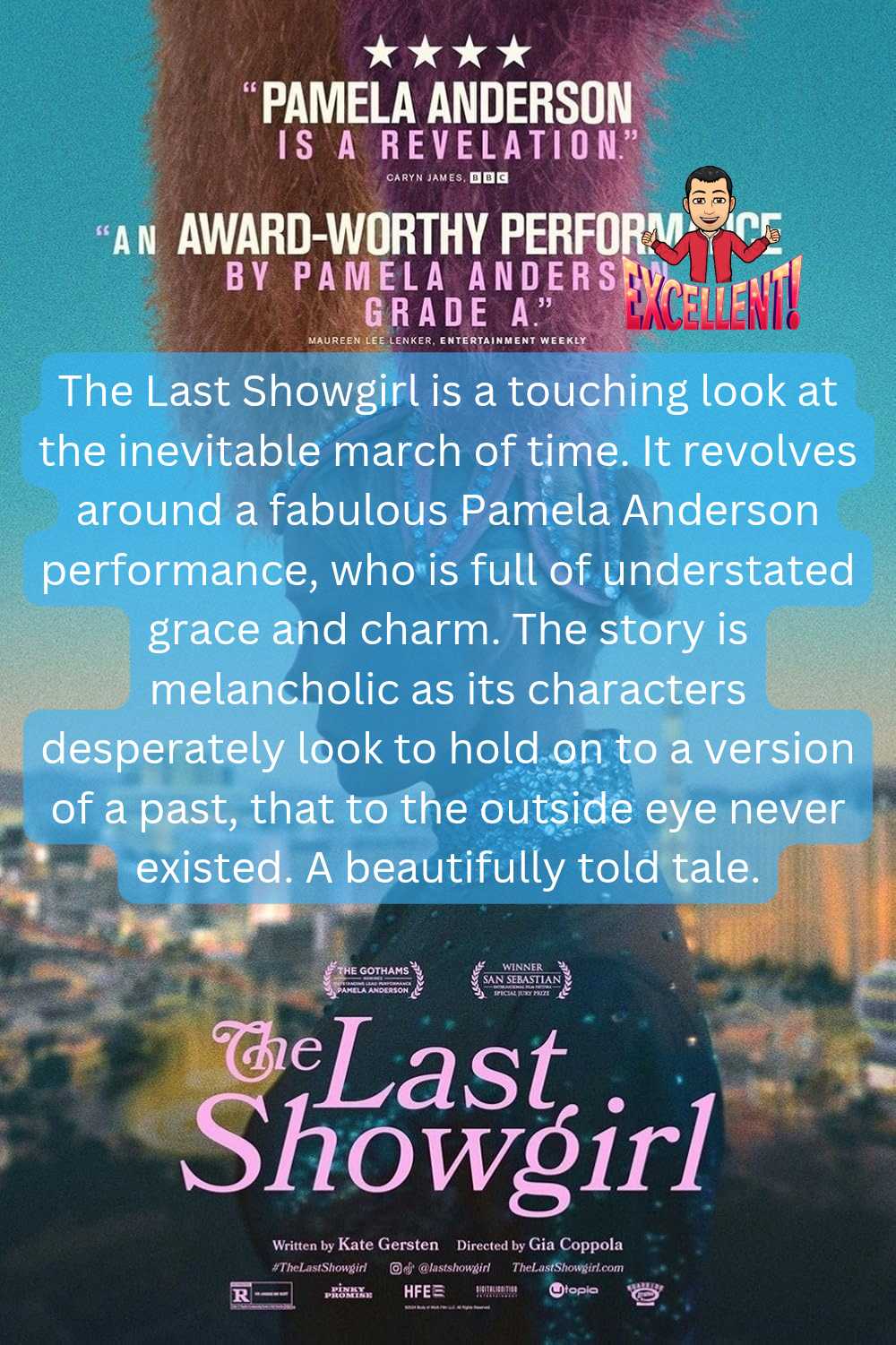 The Last Showgirl is a touching look at the inevitable march of time. It revolves around a fabulous Pamela Anderson performance, who is full of understated grace and charm. The story is melancholic as its characters desperately look to hold on to a version of a past, that to the outside eye never existed. A beautifully told tale.