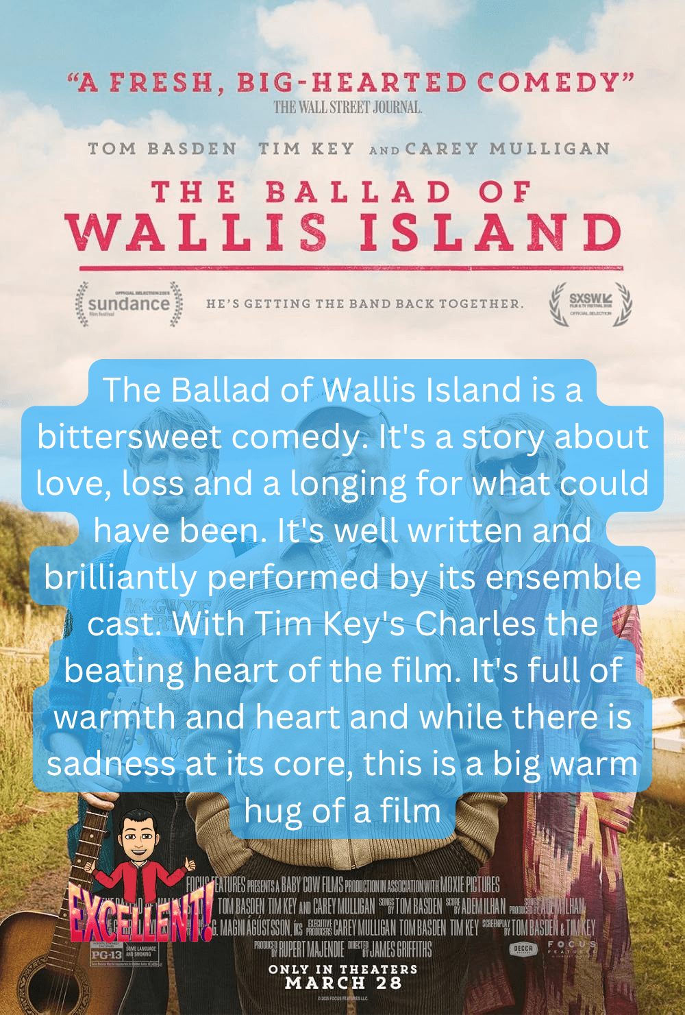 The Ballad of Wallis Island is a bittersweet comedy. It’s a story about love, loss and a longing for what could have been. It’s well written and brilliantly performed by its ensemble cast. With Tim Key’s Charles the beating heart of the film. It’s full of warmth and heart and while there is sadness at its core, this is a big warm hug of a film