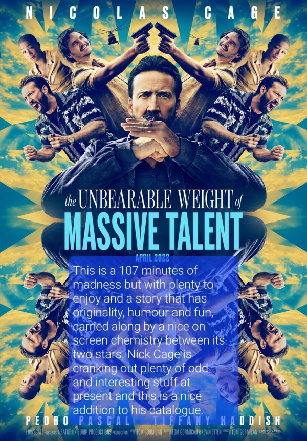 This is a 107 minutes of madness but with plenty to enjoy and a story that has originality, humour and fun, carried along by a nice on screen chemistry between its two stars. Nick Cage is cranking out plenty of odd and interesting stuff at present and this is a nice addition to his catalogue.