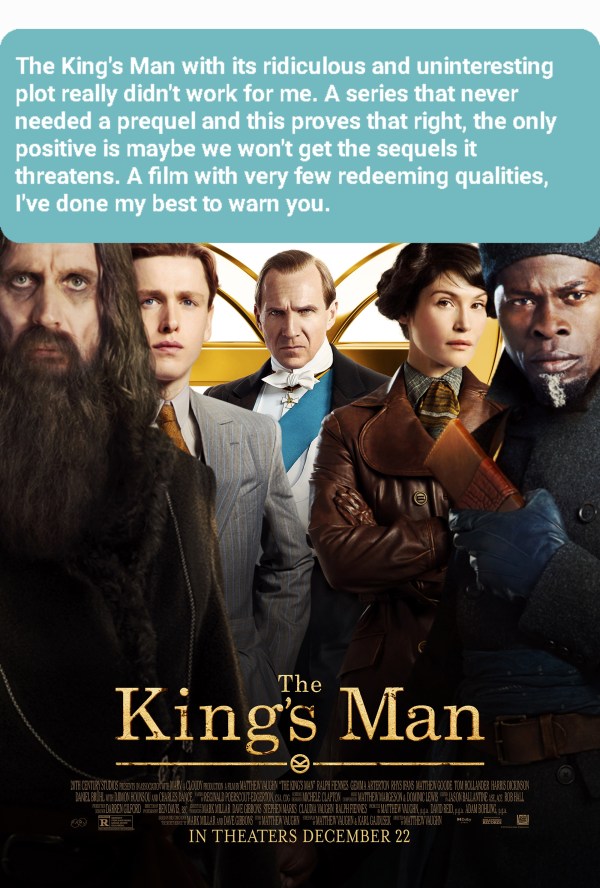 The King’s Man with its ridiculous and uninteresting plot really didn’t work for me. A series that never needed a prequel and this proves that right, the only positive is maybe we won’t get the sequels it threatens. A film with very few redeeming qualities, I’ve done my best to warn you.